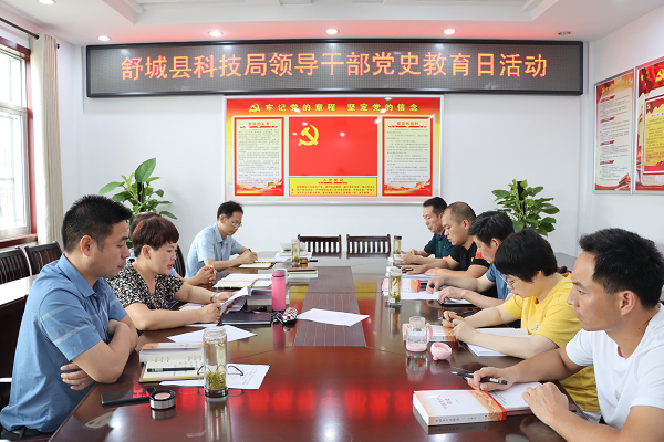 6月30日,舒城县科技局开展领导干部党史教育日活动,局全体机关干部参加了学习,局党组成员石思德主持会议。